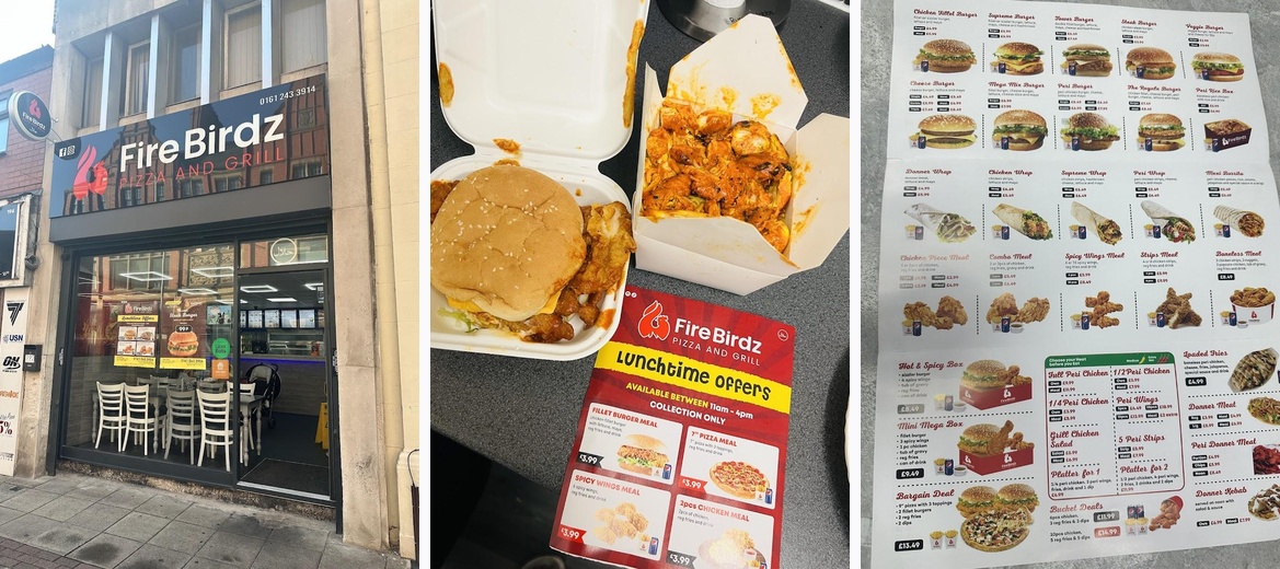 Discover delicious dining at Firebirdz Pizza and Grill in Ashton-u-Lyne. Indulge in mouthwatering pizzas, spicy peri-peri chicken, and gourmet burgers in a cozy atmosphere. Perfect for lunch or takeout, enjoy a culinary experience packed with flavor without breaking the bank. Open daily! Call us at +44 161 243 3914.